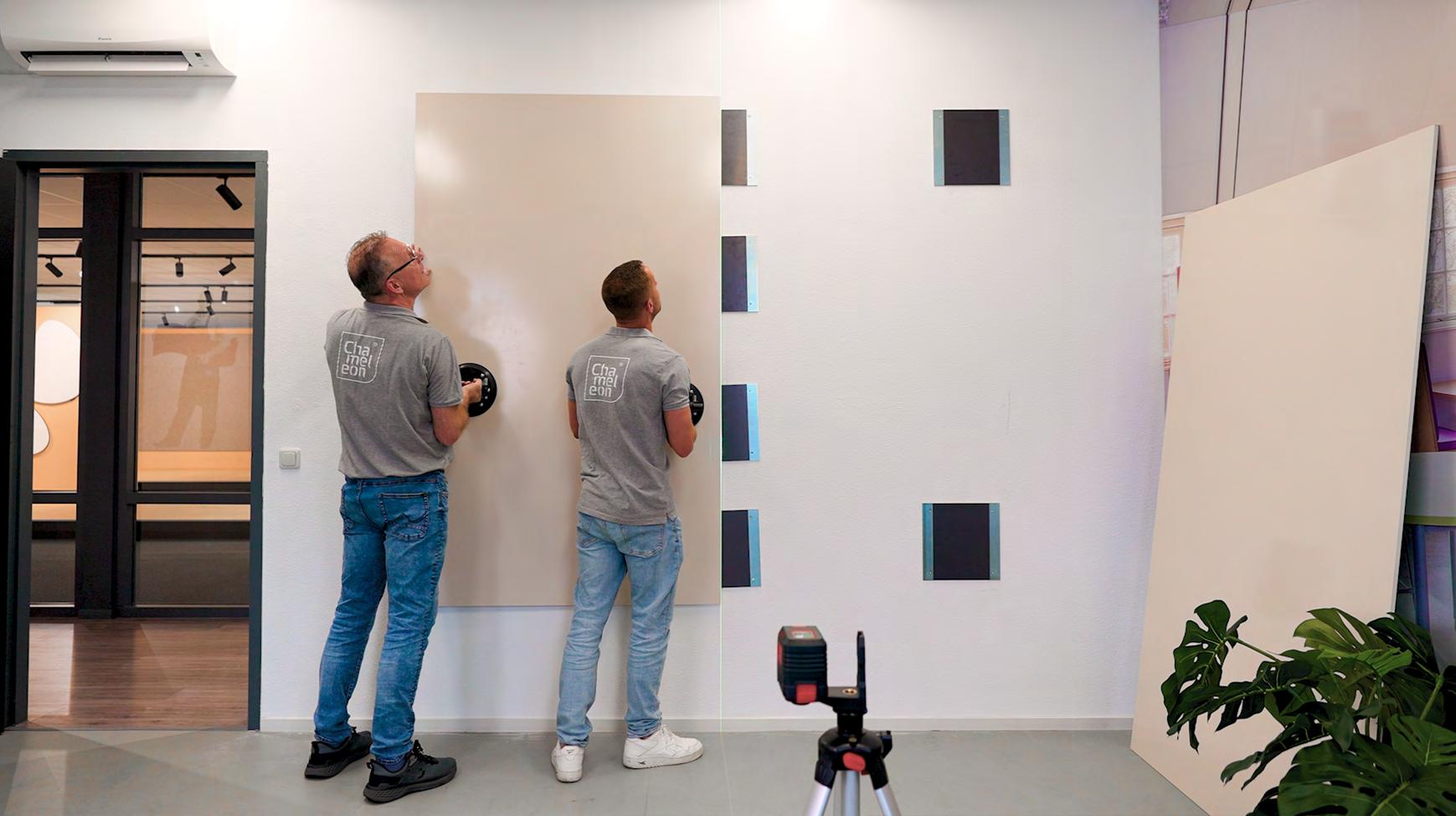 Chameleon whiteboards are delivered with the TÜV certified Chameleon magnetic mounting system. Magnetic mounting is very easy, and we supply a specified assembly drawing with each custom Chameleon whiteboard wall we sell.