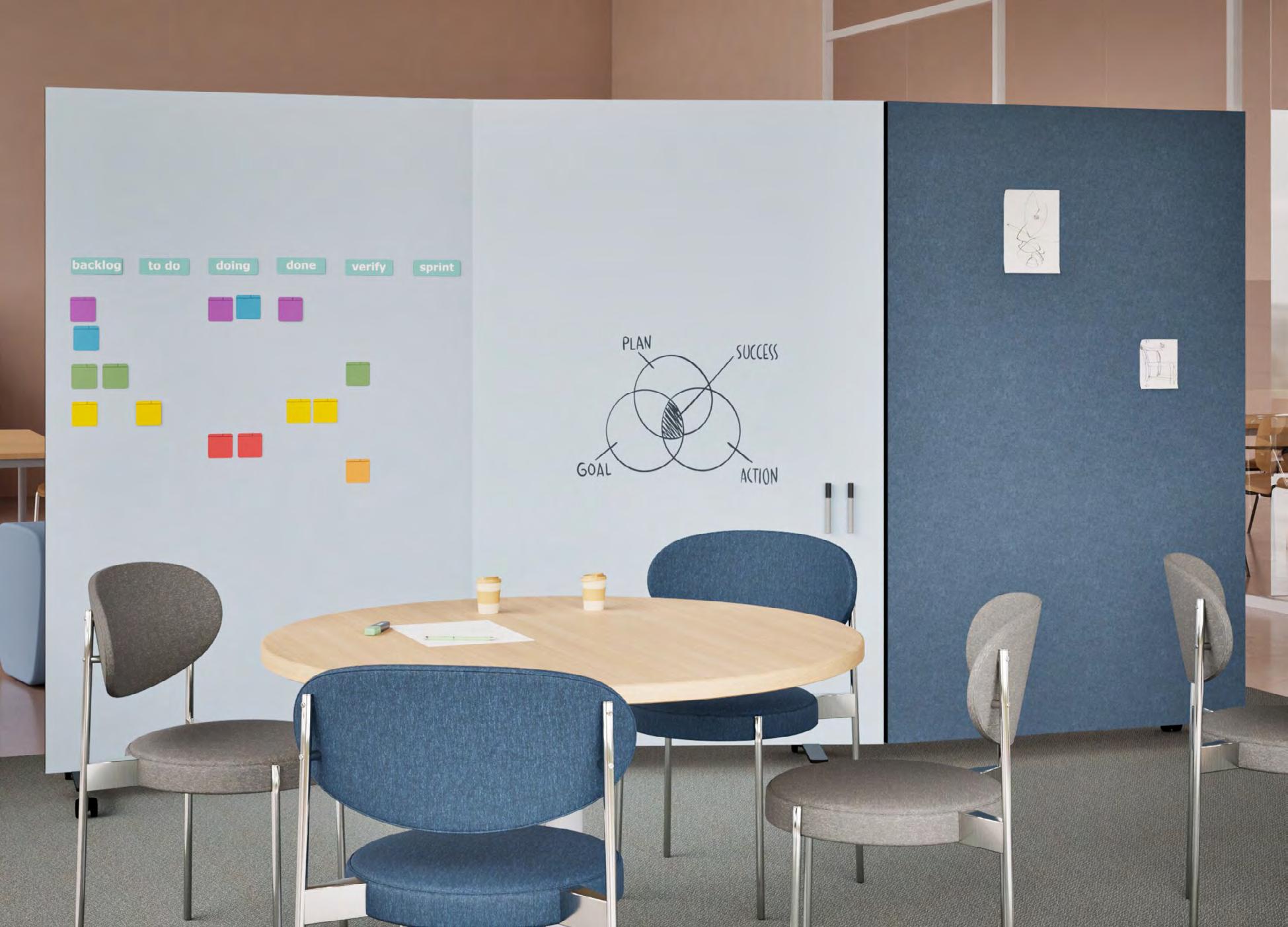 The Chameleon product portfolio is an addition to any interior project where collaboration and creativity for end users are key objectives. The whiteboards and acoustic wall panels are available in pCon.planner, pCon.box, pCon Catalog, and pCon.facts.