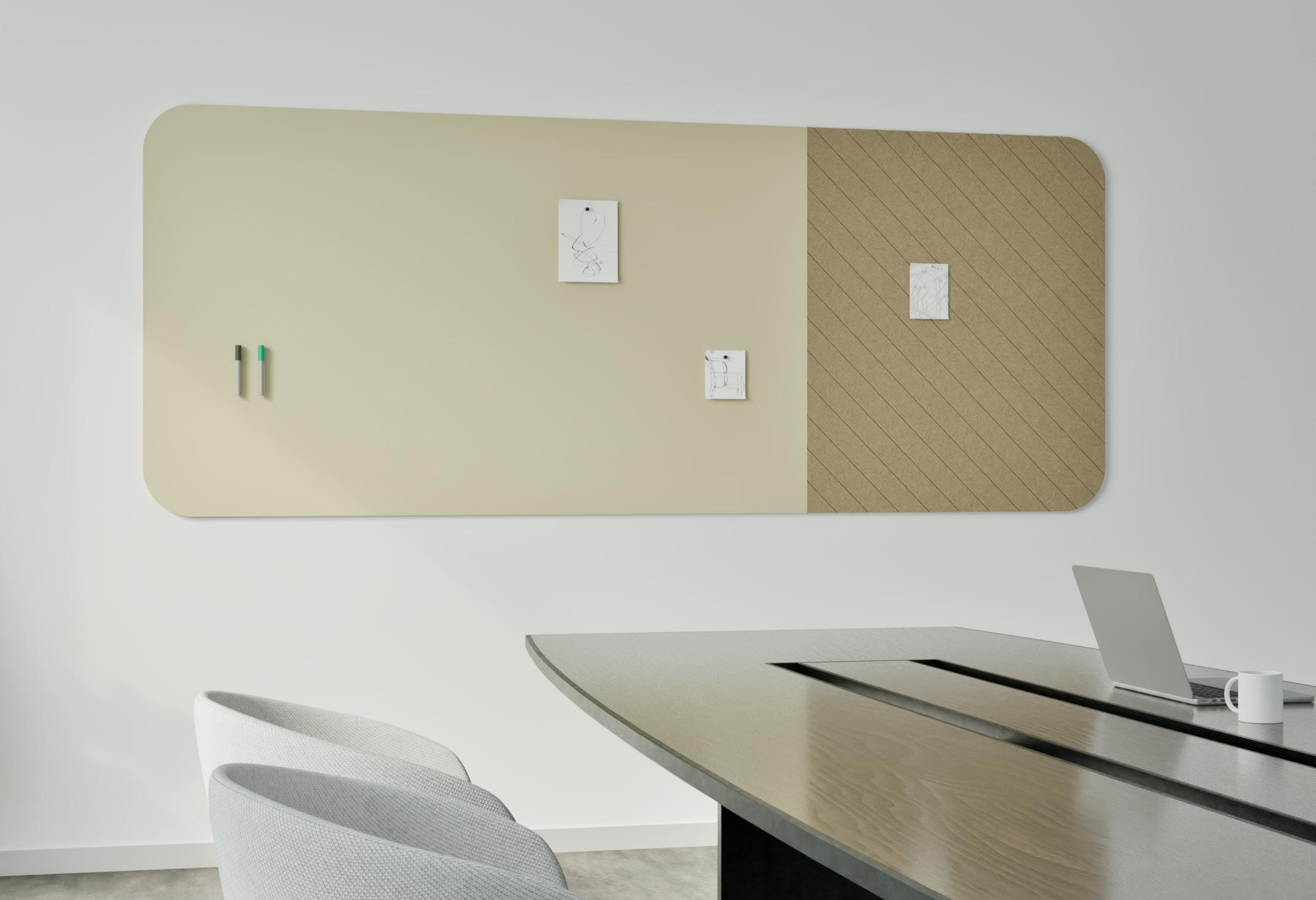 Chameleon Curve ist ein rahmenloses Whiteboard mit abgerundeten Ecken. Chameleon Curve Paneele können einfach mit dem mitgelieferten magnetischen Montagesystem aufgehängt werden.