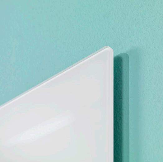 Glas bietet die gleiche perfekte Schreib- und Abwischqualität wie Emaille. Der Unterschied zu Emaille liegt im höheren Glanzgrad und einem Schatteneffekt hinter dem geschriebenen Text. Smit Visual verwendet gehärtetes Sicherheitsglas.