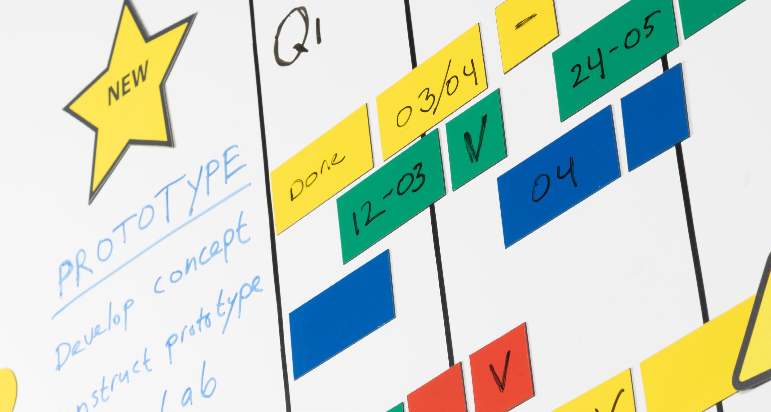- Platzieren Sie mit Hilfe von Etikettenhaltern oder C-Profilen Beschriftungen mit Produktnamen, Barcodes oder Namen von verantwortlichen Personen auf Ihrem Visual Management Board