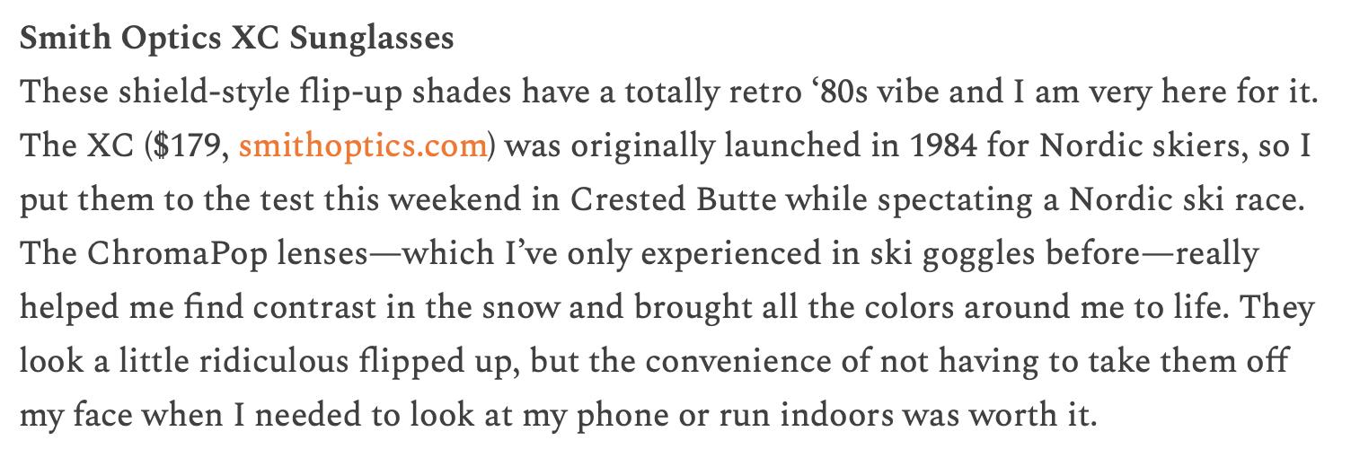 Link: https://www.travelandleisure.com/smith-optics-embark-snow-sunglasses-7112201