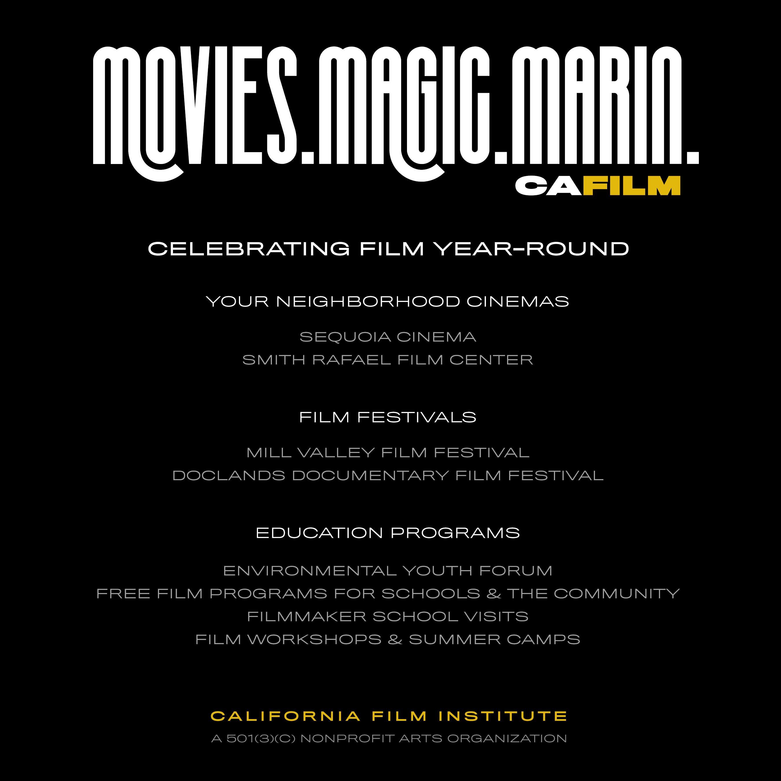 The following donors help sustain year-round programs at the California Film Institute, including DocLands, ensuring that internationally acclaimed, established, and emerging filmmakers have a platform to share their stories with our community. Their support provides free educational programs to thousands of diverse Bay Area students, preserves and programs a historic art-house theaters, and strengthens independent filmmaking to make a lasting impact. Thank you to all of our dedicated supporters!