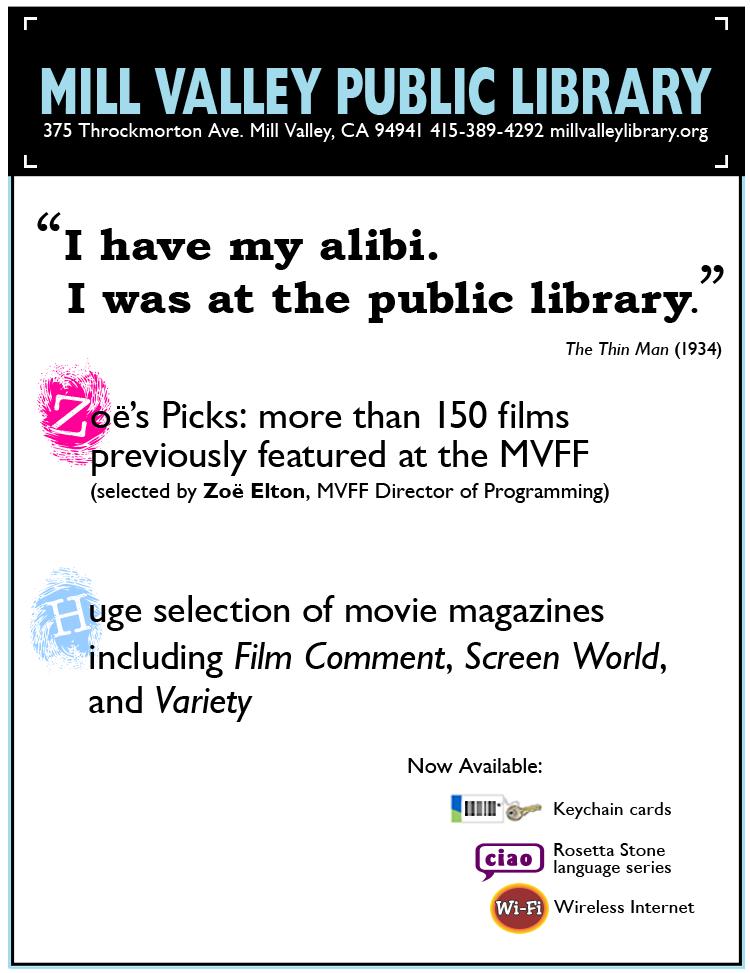 The Mill Valley Film Festival is made possible in part through the generous support of our sponsors and patrons. The reserved seating section at our screenings and events is provided for filmmakers and sponsors, to show our appreciation for their contributions and their generous support of the Mill Valley Film Festival.