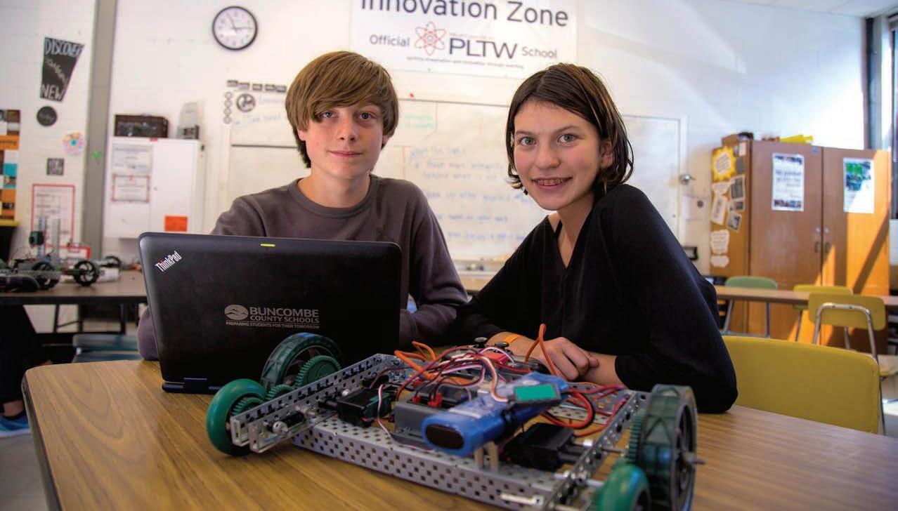 Among Buncombe County Schools’ education initiatives is “Learn and Earn Online,” a program that allows sophomores, juniors and seniors the opportunity to take online college-level courses taught by instructors from Asheville-Buncombe Technical Community College. Students may also take classes not offered at their high schools through North Carolina Virtual Public School, which sets up coursework, group discussion and student-teacher interaction via the Internet.