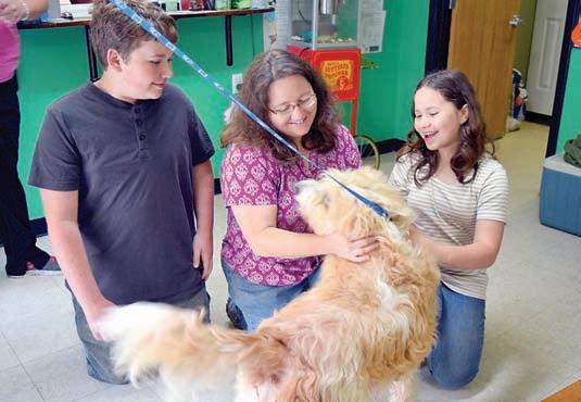 Angela Walker (middle) and her children Sam and Sara, meet Dante, a shelter dog they adopted for Angela’s mother at Appalachian Animal Rescue in Franklin.