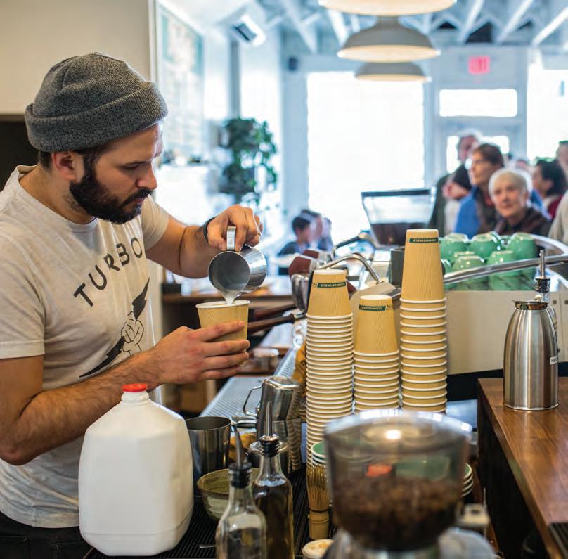 Cabell Tice prepares an order at Orchard Coffee in Waynesville.