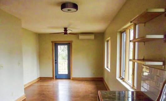 We found a gently sloping south-facing site near Burnsville. It has a great solar window and has enough slope to accommodate a “walk-out” lower level without being too steep to garden, etc. It is also fairly close to goods and services, and is walking distance to the school (over a log bridge!).