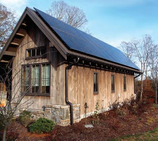 A raised-seam metal roof was determined to be the best solution for attaching solar panels and providing a clean platform for rainwater harvest.
