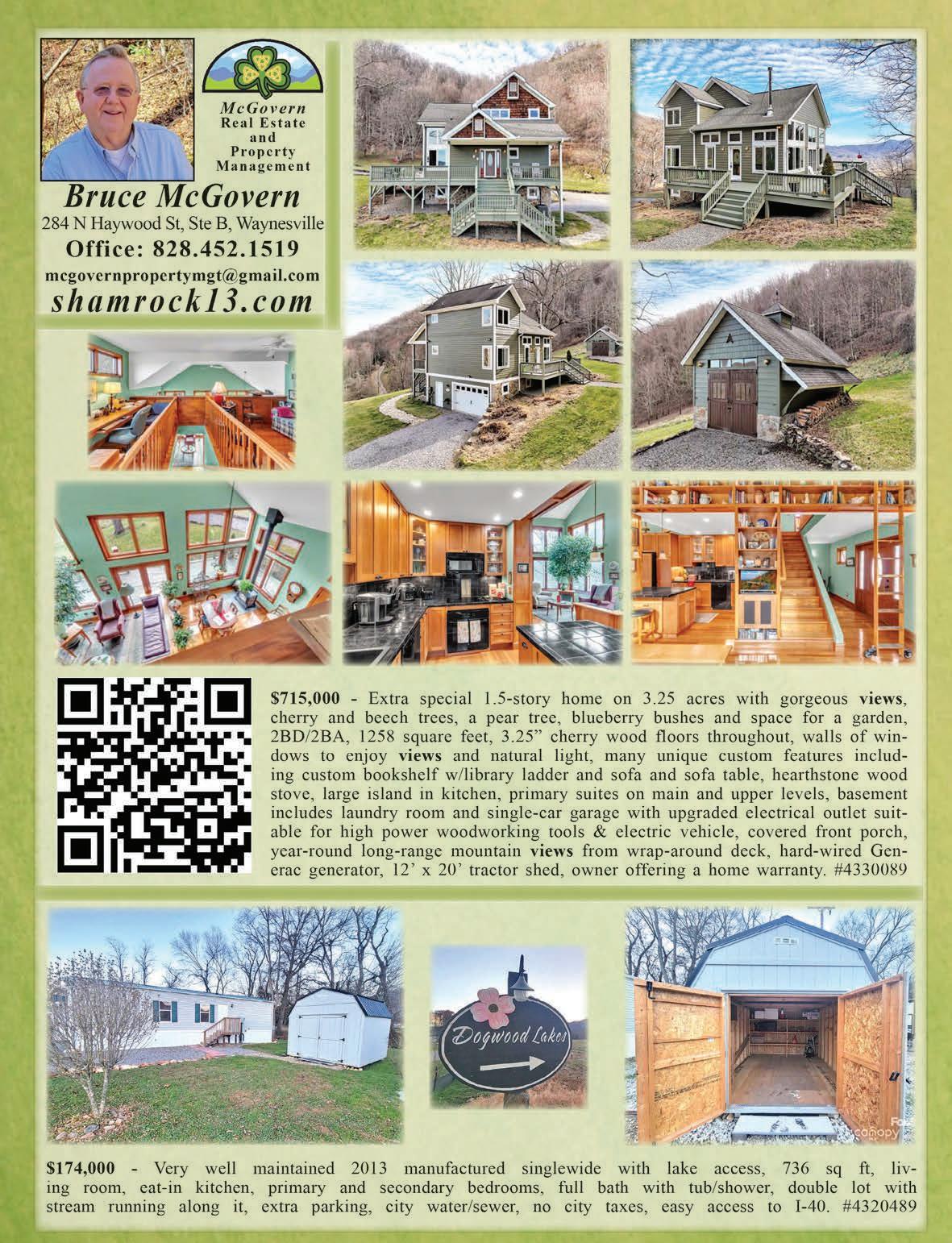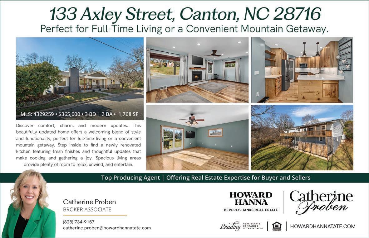 DISCOVER YOUR MOUNTAIN DREAM in this beautifully crafted home, tucked away at the end of a cul-desac near the Waynesville CC. THREE spacious ensuite bedrooms, each with a private bath for ultimate comfort, to include the primary suite on the main level, plus additional o ce/bdrm & an exercise/ theatre room. Open living area w/a stone fireplace & kitchen w/granite, custom cherry cabinetry & an induction range. Enjoy the hot tub for unwinding after a long day. The stunning outdoor living space is designed for relaxing & cozy up to the outdoor fireplace, as you hear the sounds of the waterfall. MLS#4240828 $775,000