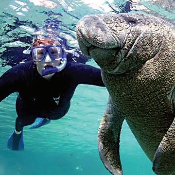 Manatees can not live in water below 68 degrees Fahrenheit. In winter Florida Manatees seek out fresh water springs where the water is a constant 72 degrees year round. Kings Bay has several springs and is an important Florida manatee wintering ground. I believe reputable, conscientious tour companies like Plantation Dive Shop can help protect the Florida manatee. They teach people appreciation of these gentle, inquisitive aquatic giants. The revenue they generate helps agencies better protect the animals plus shows the powers that be that the public (you and me) cares about theses creatures and wants our grandkids and their grandkids to be able to see them.