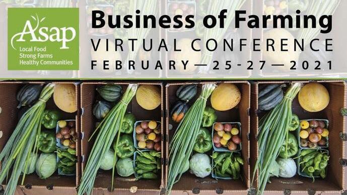 • Registration is now open for the 18th annual Business of Farming Conference, which will be held Feb. 25 to 27 using a virtual format. Register at www.asapconnections.org. Cost is $95 per person before Feb. 1 and $115 thereafter. Farm partners registering together will receive a discount, and Appalachian Grown certified farmers will receive a 30 percent discount.