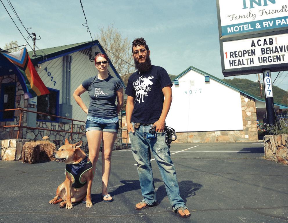 Kitty (left) and Cody Currin stand outside their Maggie Valley motel on May 24, 2021. Jeffrey Delannoy photo