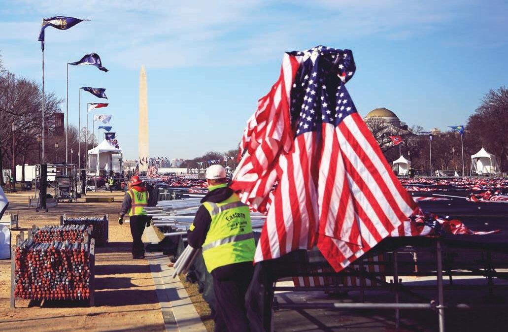 On Jan. 21, workers begin to remove displays and equipment used on an Inauguration Day that was heavily influenced by the events of Jan. 6. Jeffery Delannoy photo