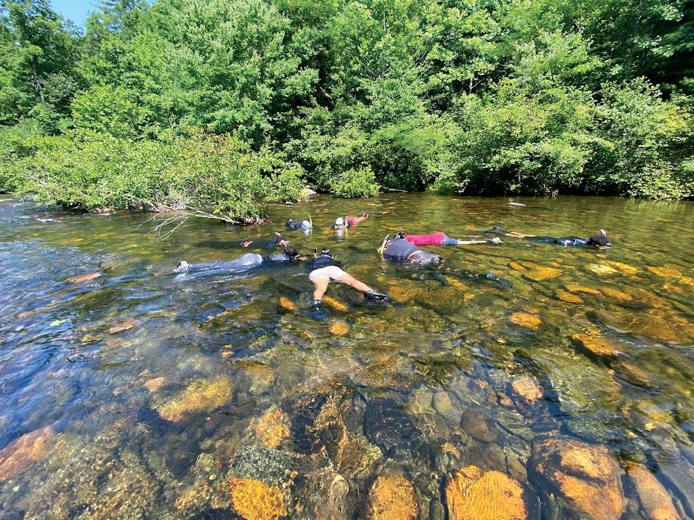 When people think about snorkeling, usually images of clear ocean waters and tropical reefs come to mind, but the new Blue Ridge Snorkel Trail will give people a chance to see beneath the surface of creeks and rivers in 10 Western North Carolina counties. (Page 30) Two kids snorkel in a mountain stream. Mainspring Conservation Trust photo