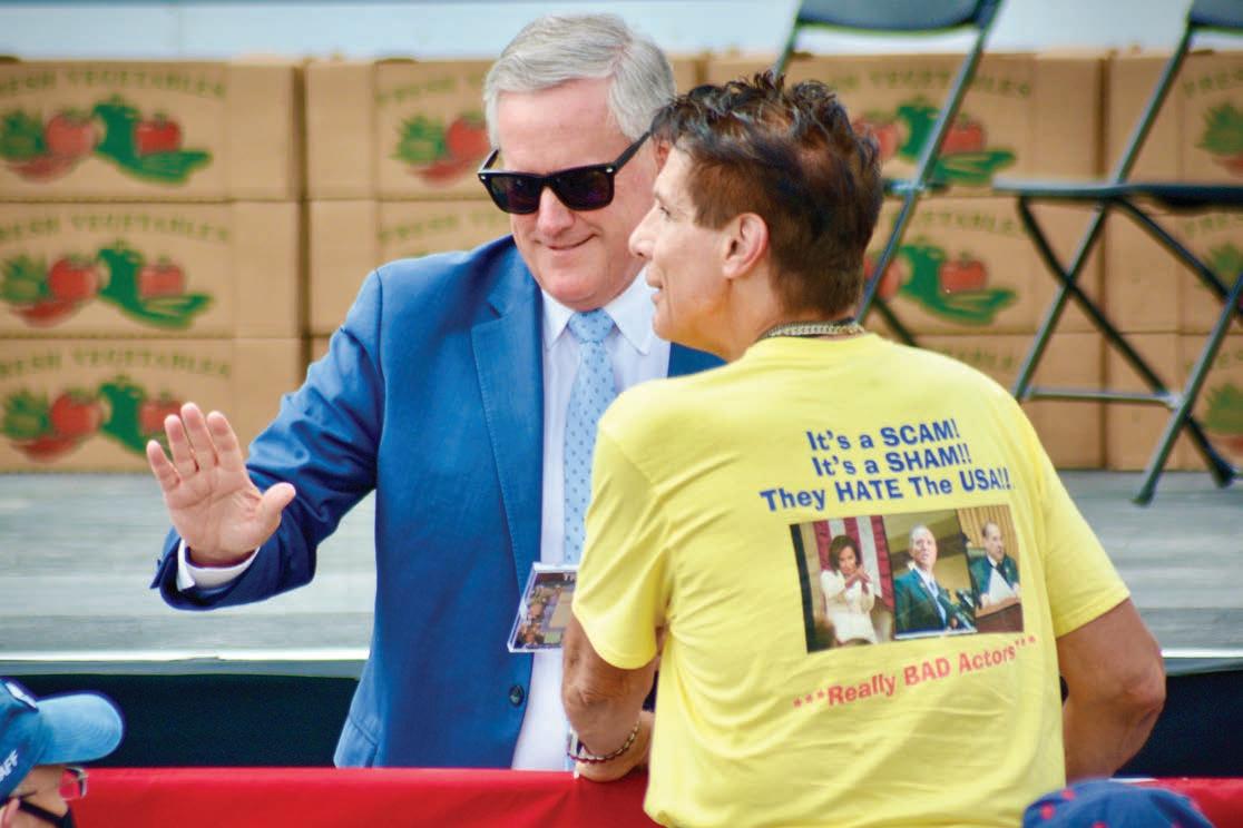 Once Miller’s questions ended, she took questions from the crowd. The first came from Janet Presson, who has spread misinformation and conspiracy theories about vaccinations at local events and during public comment sessions in the past, including telling Waynesville alderman in 2020 that the town’s emergency ordinance gave too much power to aldermen. In fact, it gave them less.