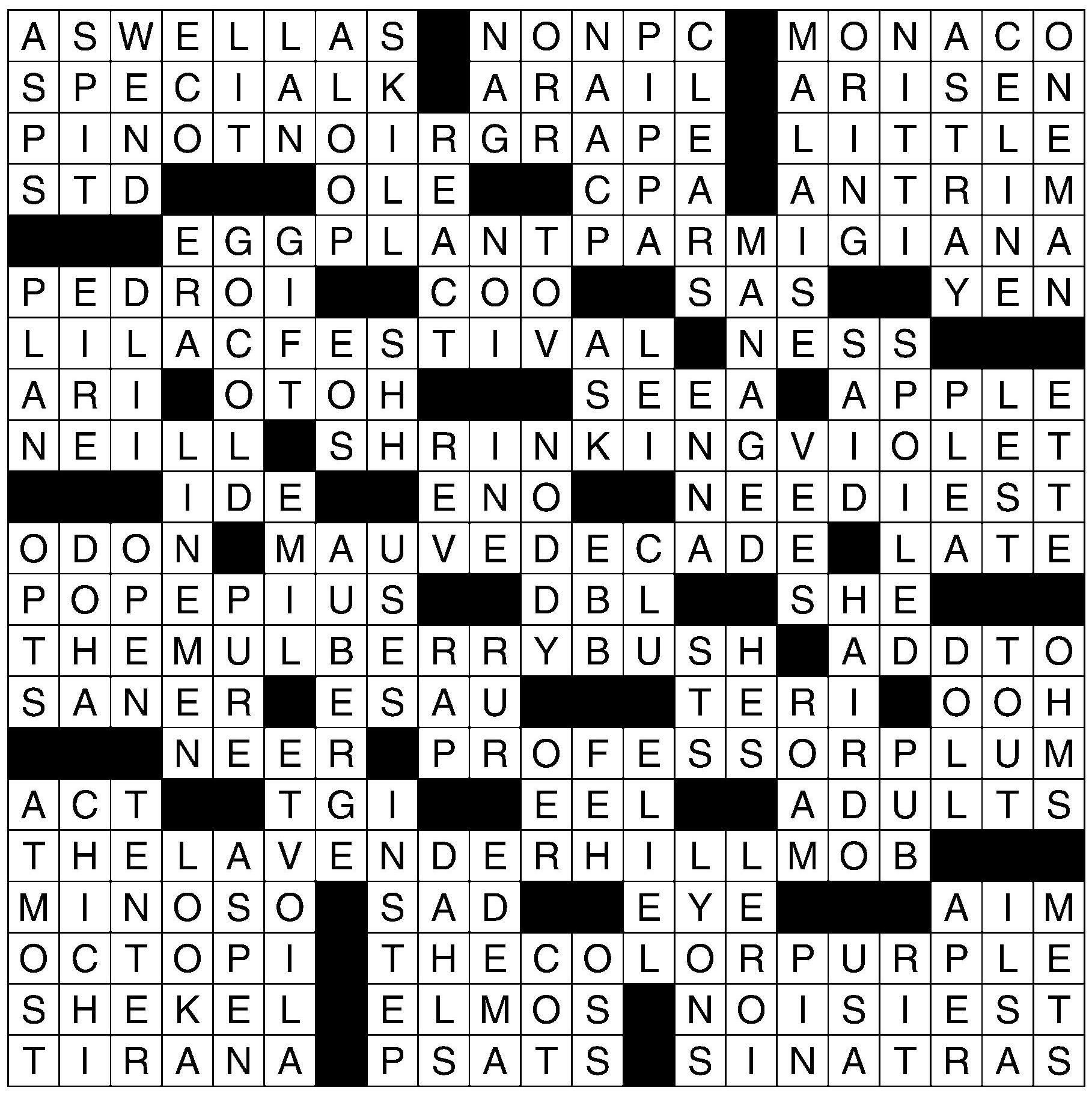 Person camping out, often 108 Foot part 112 “Don’t — gift horse in the mouth” 113 Quaking tree 114 Writer Roald and actress Arlene 115 Stalk swelling 116 City south of Dijon 117 “Vive —!” (French cry)