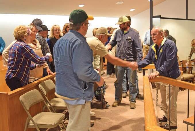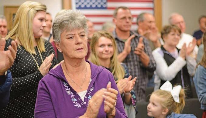 Members of the community opposed to Sunday morning alcohol sales applaud following public comment from one of the many anti-alcohol speakers who spoke during a public hearing March 19. Holly Kays
