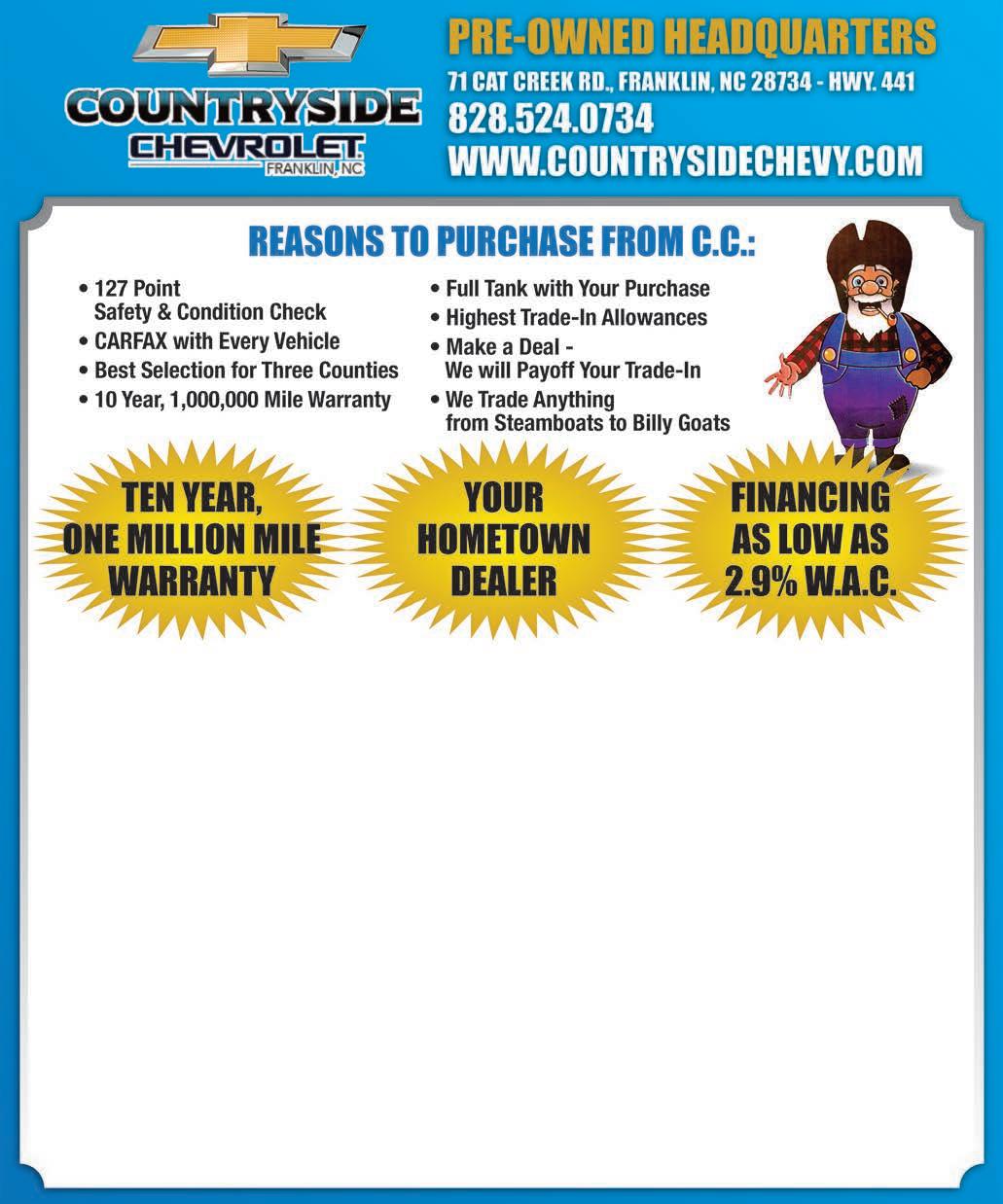 Your classified ad could be reaching over 1.6 Million Homes across North Carolina! Place your ad with The Smoky Mountain News on the NC Statewide Classified Ad Network- 118 NC newspapers for a low cost of $375 for 25-word ad to appear in each paper! Additional words are $10 each. The whole state at your fingertips! It's a smart advertising buy! Call Scott Collier at 828.452.4251 or for more information visit the N.C. Press Association's website at www.ncpress.com