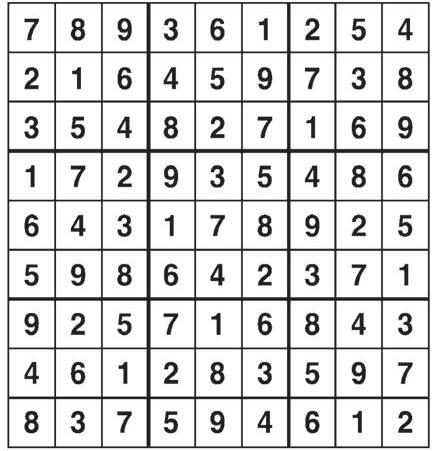 Place a number in the empty boxes in such a way that each row across, each column down and each small 9-box square contains all of the numbers from one to nine. Answers on Page 48