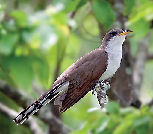 The yellow-billed cuckoo is a bird that is often heard but seldom seen. Along with the Swainson’s warbler, it is one of the most furtive birds that breeds in Western North Carolina. The cuckoo is known to farmers as the “rain crow” because its hollow, lowpitched “kowp, kowp, kwop, kwop” vocalizations are often sounded just before a sum-