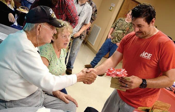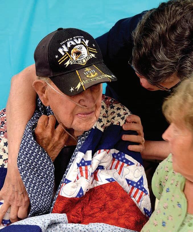 Carlie Nichols presents WWII veteran Garland Bolding with a Quilt of Valor. Jessi Stone photos