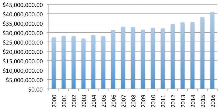 of 35 cents per $100 of assessed value, which brings in about $455,000 to the town coffers.