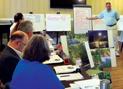 Waynesville Parks and Recreation Director Rhett Langston (right) presents his plans to town administration Feb. 24. Cory Vaillancourt photo