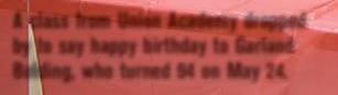 A class from Union Academy dropped by to say happy birthday to Garland Bolding, who turned 94 on May 24.