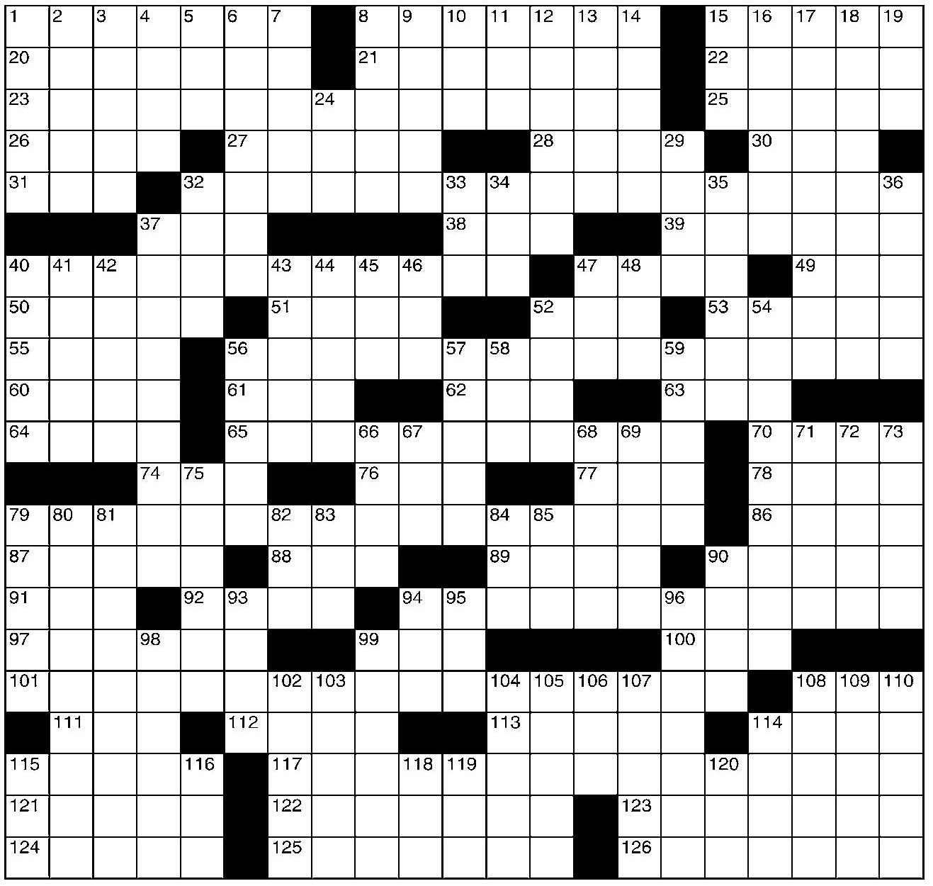 114 Foot 115-Acrosses 115 Thumb, e.g. 117 Baseballer’s time to shine?