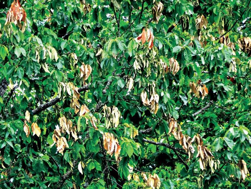 Flagging caused by 17-year periodical cicadas from Brood VI laying their eggs. Don