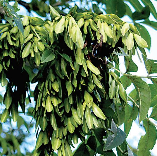 t’s generally overlooked, but I think ash is a pretty tree, especially when it’s fruiting. The winged seeds that appear in dense clusters on the branches below the leaves are called samaras (SAM-a-ras).