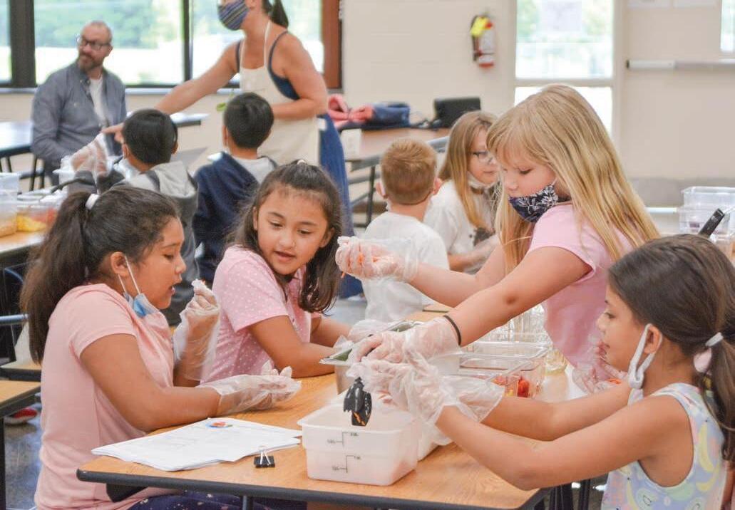 Excitement could be heard in the unconstrained murmuring of elementary school students at Blue Ridge School Monday morning as they filed into the cafeteria. Tables were set with Mason jars, pre-cut vegetables of almost every color of the rainbow, salt, pepper and oregano.