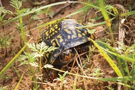 worms, strawberries, various fruits, and even carrion. When my wife, Elizabeth, and I gather mushrooms in the fall, we sometimes find specimens with a triangular bite taken out of the cap. In Amphibians and Reptiles of the Carolinas and Virginia (UNC Press, 1989), the authors note that, “Box turtles eat several kinds of poisonous mushrooms ... and cases of poisoning are known in some persons who have eaten these reptiles.” We’re more surprised that “some persons” eat box turtles than by the fact that box turtles sometimes eat poisonous mushrooms.
