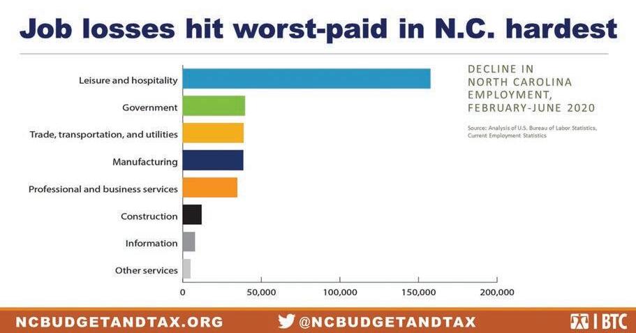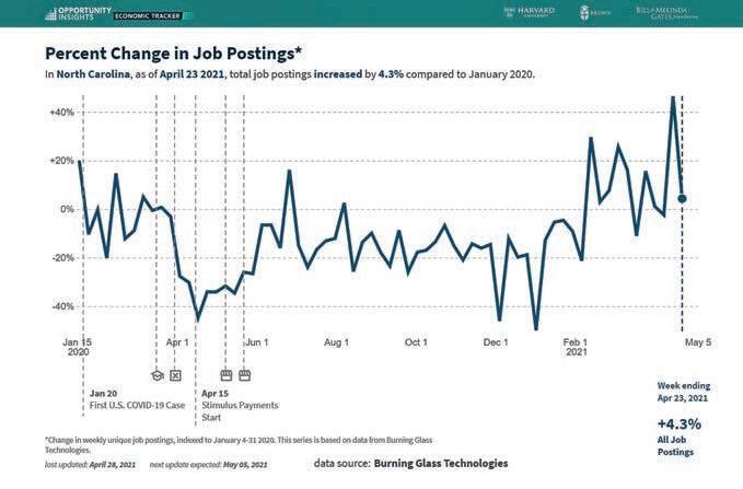 In April 2019, there were approximately 29,700 people employed in the leisure and hospitality sector but when Gov. Roy Cooper shut down bars, hotels and restaurants a year later, less than 13,000 people still had jobs. This past April, employment totals in that sector show a rebound to 24,100 employees, but most of those “help wanted” signs appear outside the same bars, hotels, and restaurants that spent much of 2020 closed.