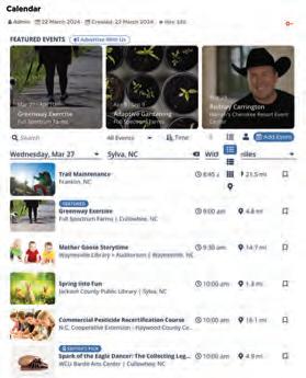 • The Jackson County Farmers Market meets every Saturday November through March 10 a.m. to 1 p.m. and April through October 9 a.m. to noon at Bridge Park in Sylva. Special events listed on Facebook and Instagram.