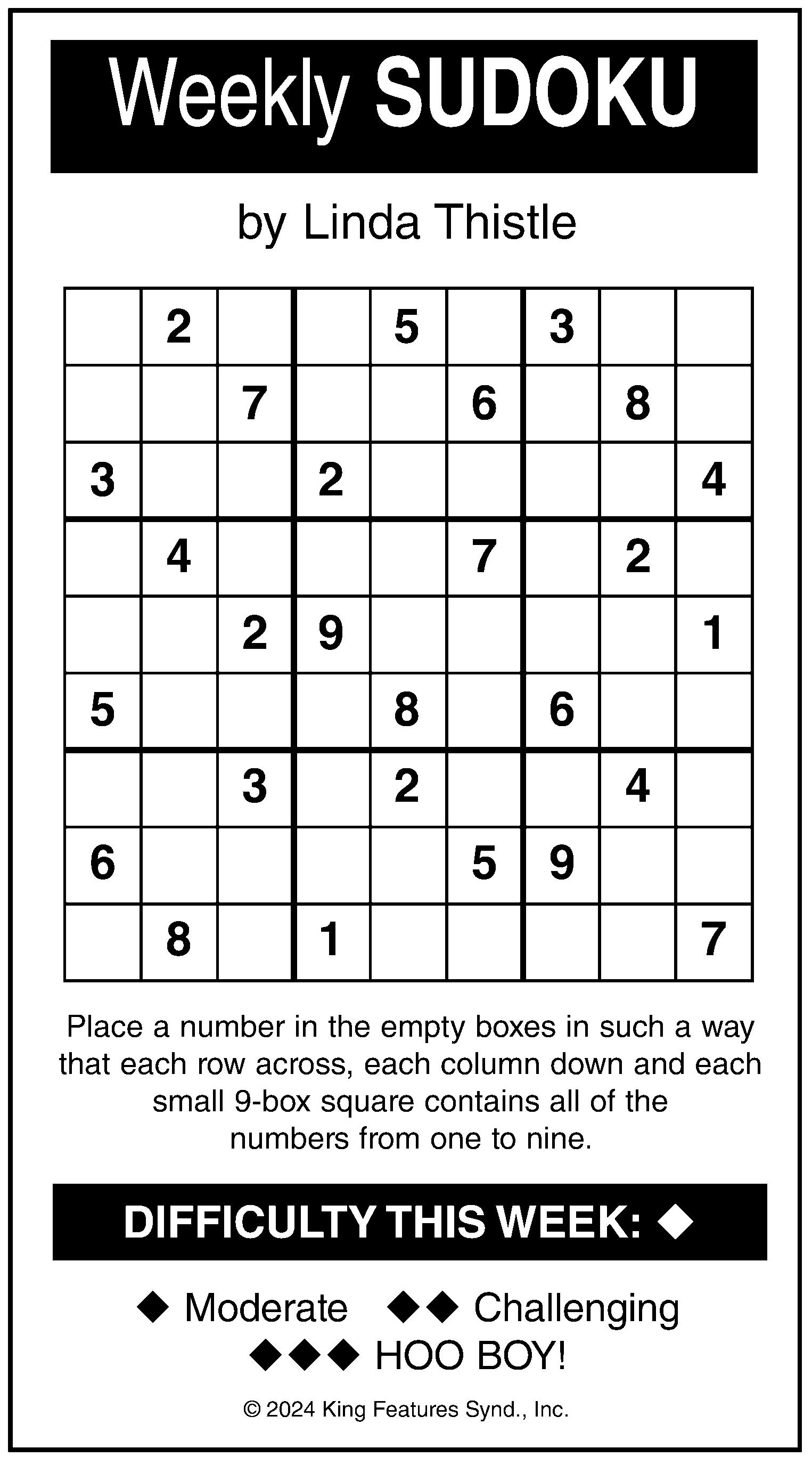Here’s How It Works: Sudoku puzzles are formatted as a 9x9 grid, broken down into nine 3x3 boxes. To solve a sudoku, the numbers 1 through 9 must fill each row, column and box. Each number can appear only once in each row, column and box. You can figure out the order in which the numbers will appear by using the numeric clues already provided in the boxes. The more numbers you name, the easier it gets to solve the puzzle!