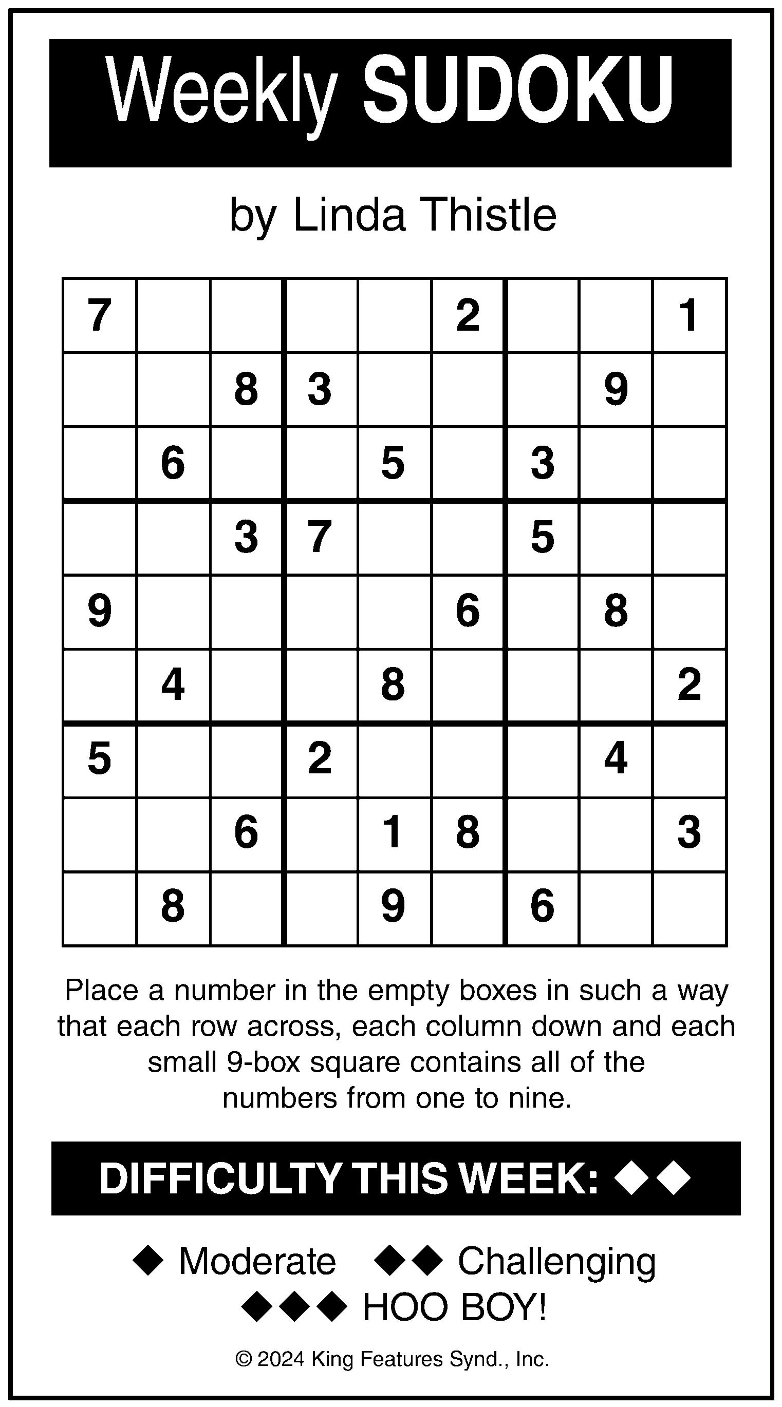Here’s How It Works: Sudoku puzzles are formatted as a 9x9 grid, broken down into nine 3x3 boxes. To solve a sudoku, the numbers 1 through 9 must fill each row, column and box. Each number can appear only once in each row, column and box. You can figure out the order in which the numbers will appear by using the numeric clues already provided in the boxes. The more numbers you name, the easier it gets to solve the puzzle!