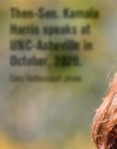 Then-Sen. Kamala Harris speaks at UNC-Asheville in October, 2020. Cory Vaillancourt photo