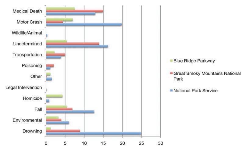 Digging through National Park Service data, The Smoky Mountain News takes a look at the circumstances behind deaths that have occurred in the Great Smoky Mountains National Park and along the Blue Ridge Parkway. (Page 28) Slippery rocks and unpredictable currents make water features like Midnight Hole in the Great Smoky Mountains National Park common sites for injuries and fatalities. NPS photo