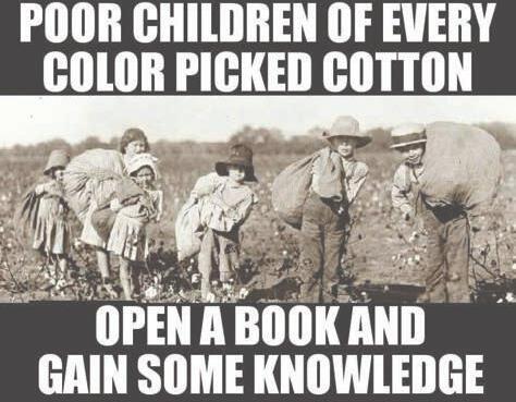 “While you have this picture of impoverished white children picking cotton, slaves were not simply poor. They were property. That’s quite a distinction.”