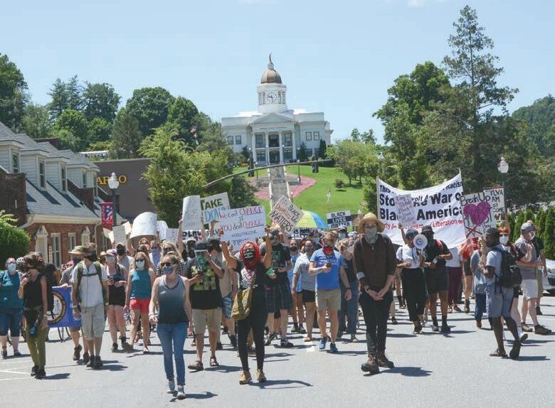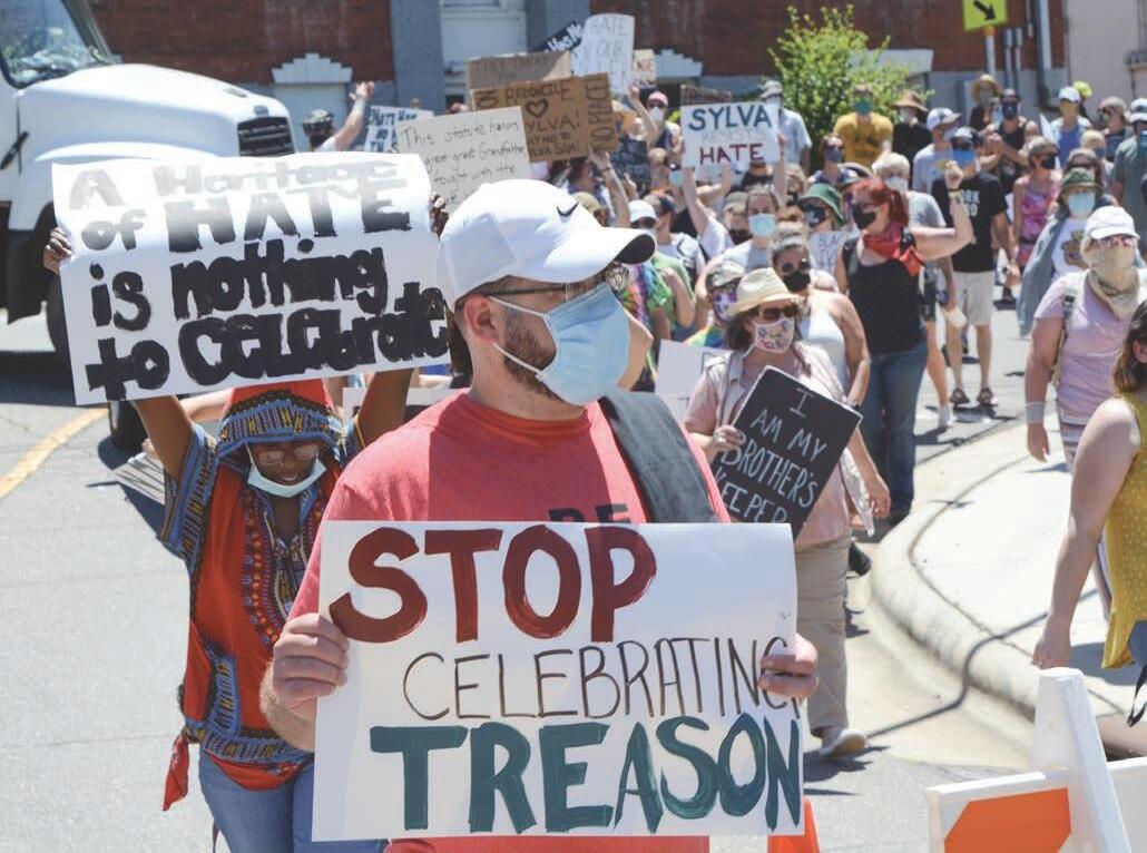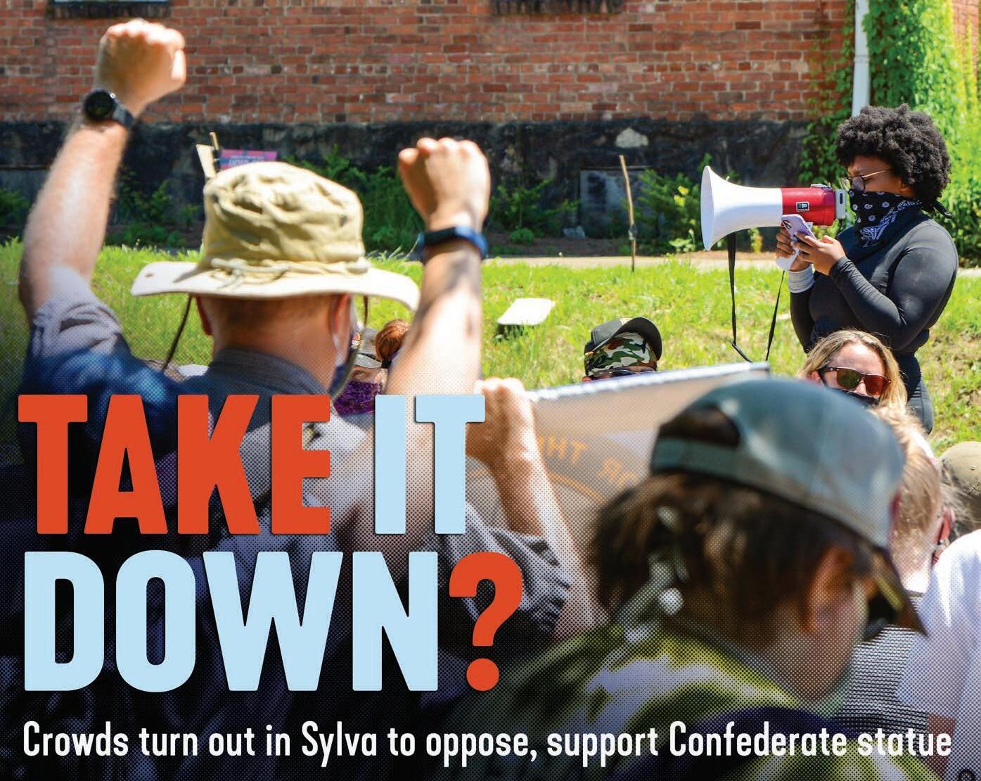 The Smoky Mountain News team covers the protest and counter protest in Sylva this past weekend as local officials attempt to listen to both sides of the argument for removing ‘Sylva Sam’ monument on the steps of the Jackson County Historic Courthouse. (Page 6) Holly Kays photo