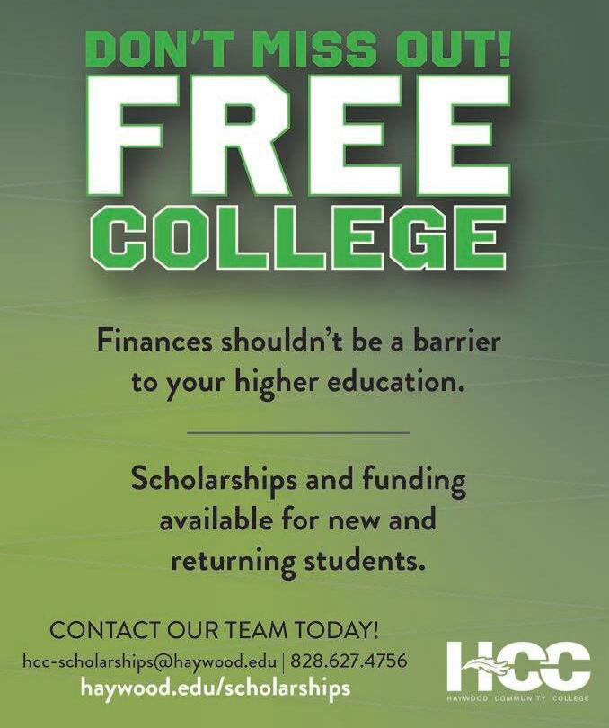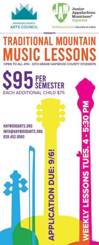 • Creek Cleanup, 9-10 a.m. Friday, July 30, at Haywood Community College. All equipment will be provided for this pickup along HCC’s waterways. Space limited. RSVP by July 28 to Mia McDowell at miamcdowell11@gmail.com or 828.476.4667, ext. 12.