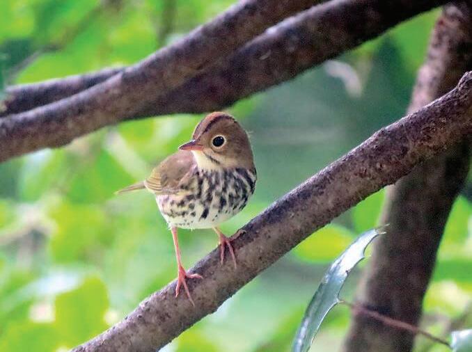 The ovenbird is a large (six-inch) grounddwelling warbler common in closed-canopy deciduous and mixed forests from eastern British Columbia to Newfoundland and throughout the eastern U.S. to northern Arkansas. They are one of the most common woodland warblers of the Southern Appalachians. They winter from south Florida to Mexico and Central America and in the Caribbean islands.