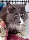 LUCIA - BEAUTIFUL GRAY & WHITE FLUFF BALL KITTY, ONLY ABOUT 10 MONTHS OLD. SHE LIKES TO BE PETTED & BRUSHED! SHE IS A LITTLE SHY AND TENDS TO STAY OUT OF SIGHT, BUT IF YOU GO SLOW AND TALK QUIETLY TO HER SHE'LL QUICKLY WARM UP. SHE'LL DO WELL IN A QUIET HOME WITH LOVING FOLKS.