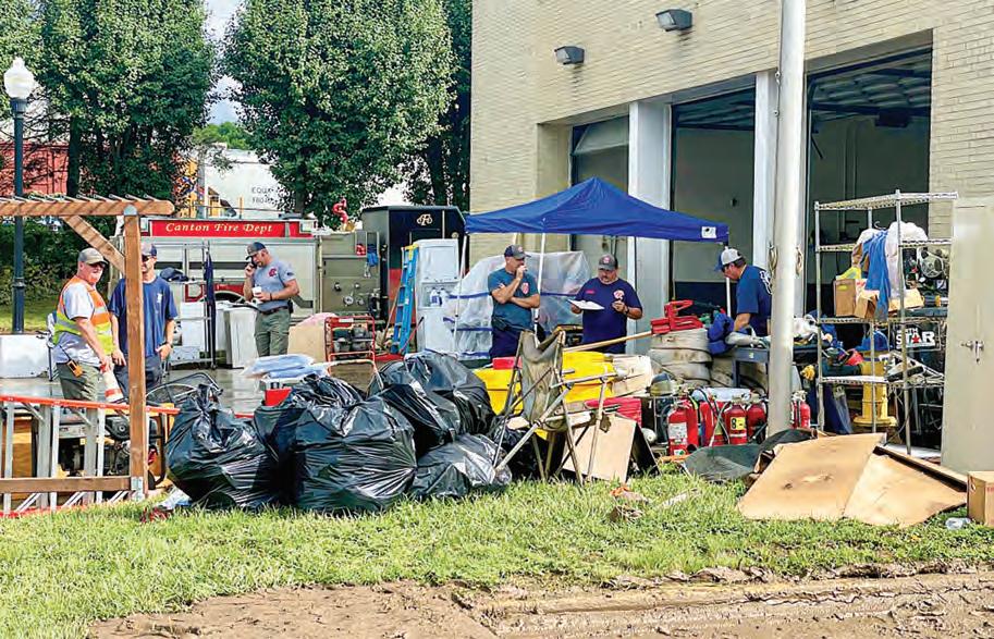 Canton firefighters continue to clean out supplies and equipment from their flood-ravaged station off Park Street on Aug. 20, 2021 — three days after floodwaters infiltrated the building. Cory Vaillancourt photo