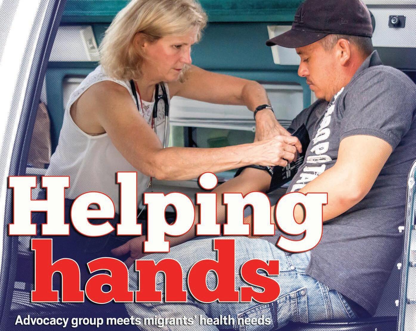 Vecinos, which means “neighbors” in Spanish, is a program based in Jackson County that seeks to fill in some of the gaps created by the hard lifestyle migrant farmworkers live, especially when it comes to health care needs. (Page 6) Nurse practitioner Janet James works with a patient in the Vecinos mobile clinic. Donated photo