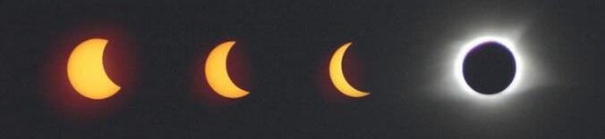 night. A strange night, hung not with a moon but with a shimmering, light-encircled black disc — the rare, unearthly sight of the moon covering the sun.