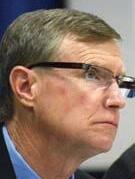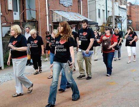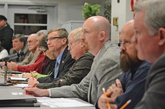 Chairman Chuck Francis (middle) and the rest of the Haywood County School Board members listen to comments from concerned parents and teachers during a public hearing regarding the closure of Central Elementary.
