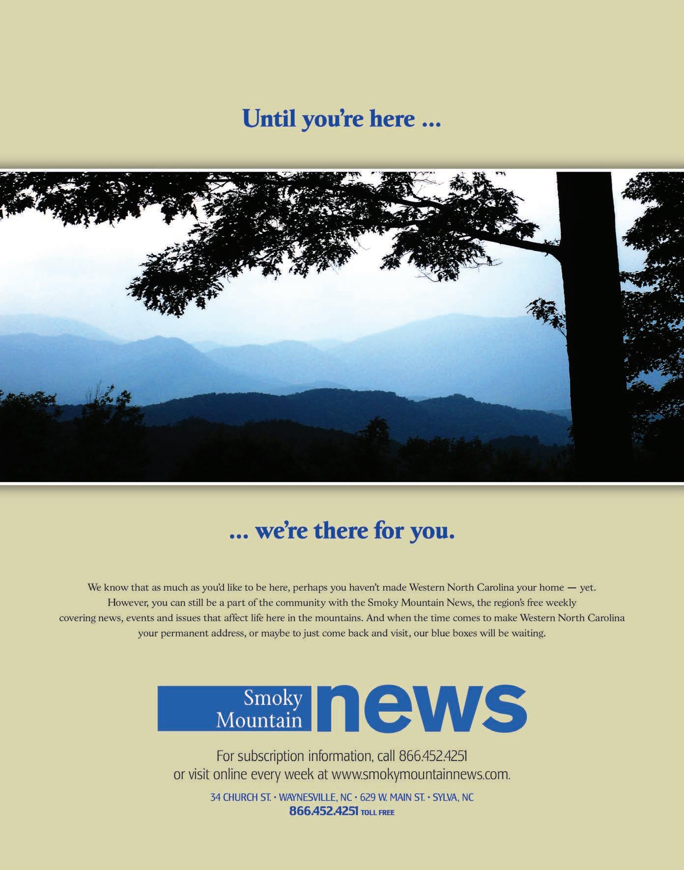 Your classified ad could be reaching over 1.6 Million Homes across North Carolina! Place your ad with The Smoky Mountain News on the NC Statewide Classified Ad Network- 118 NC newspapers for a low cost of $330 for 25-word ad to appear in each paper! Additional words are $10 each. The whole state at your fingertips! It's a smart advertising buy! Call Scott Collier at 828.452.4251 or for more information visit the N.C. Press Association's website at www.ncpress.com